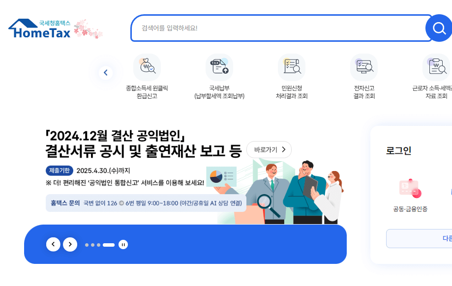- 홈택스 연계기능을 이용하여 위택스로 자동 연결