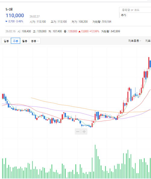 테마는 일시적입니다. 참고용으로만 할용하세요. 너무 테마에 집중하는 것은 바람직한 투자가 아닙니다. 현재 석유, 정유 관련주는 주봉상 하락상태에 있습니다.